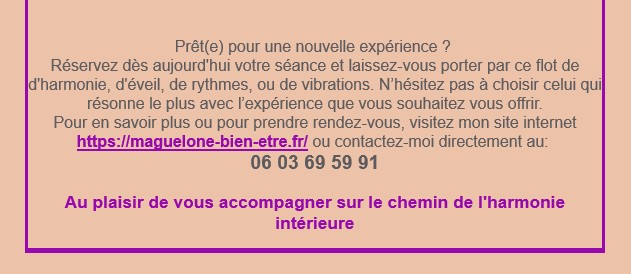 Afin de vous informer régulièrement de mes activités, des dates de mes stages et ateliers,